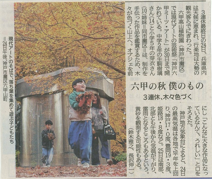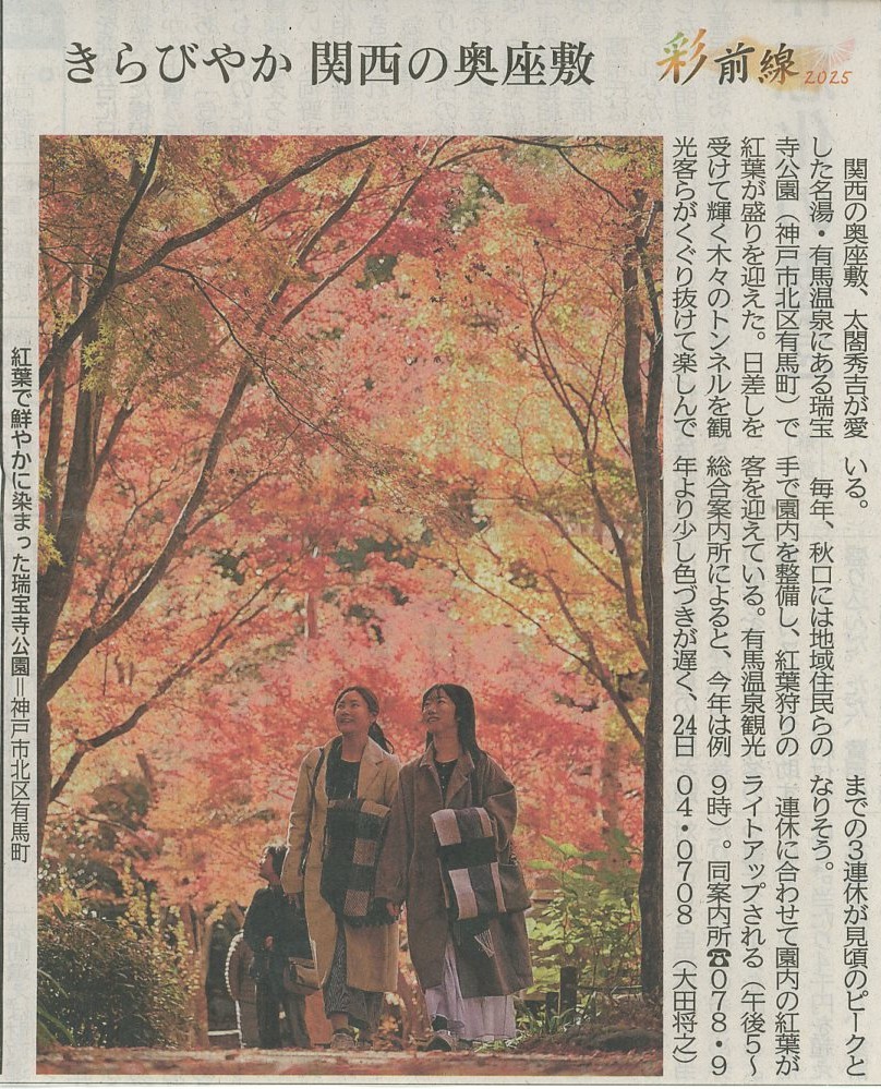 新聞に掲載された記事をまとめました。 神戸地域 あいな里山公園 有 馬 伊川谷 石井川 異人館 王子動物園 淡河町 大 沢 フルーツフラワーパーク 岡本 加納町 北区 北野坂 旧居留地 県立美術館 多井畑 綱引天満宮 ハーバーランド ハーブ園 神戸港 五色塚 三宮 ジャズストリート 須磨浦公園 須磨海岸 須磨区 須磨水族館 須磨寺 総合運動公園 総楽園 多井畑 灘区 南京町 西区 農業公園 兵庫区 再度山 舞子 摩耶山 御崎公園 湊川隧道 名谷 メリケンパーク 元町 モザイク 横尾山 離宮公園 ルミナリエ 六甲アイランド 六甲森林植物園 六甲高山植物園 六甲山