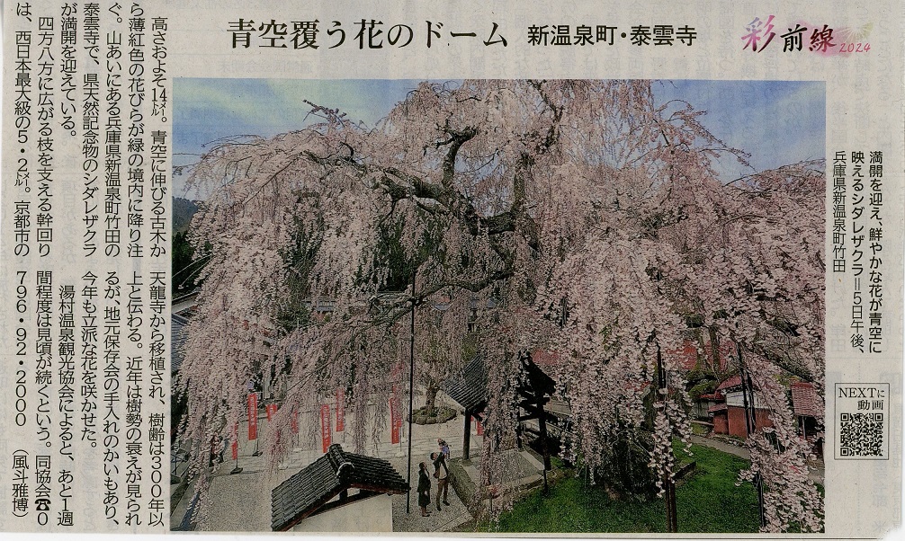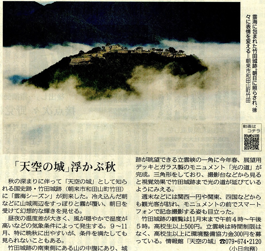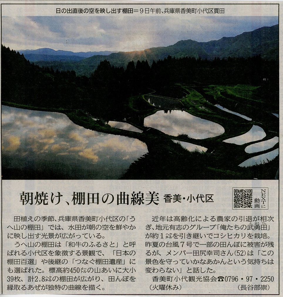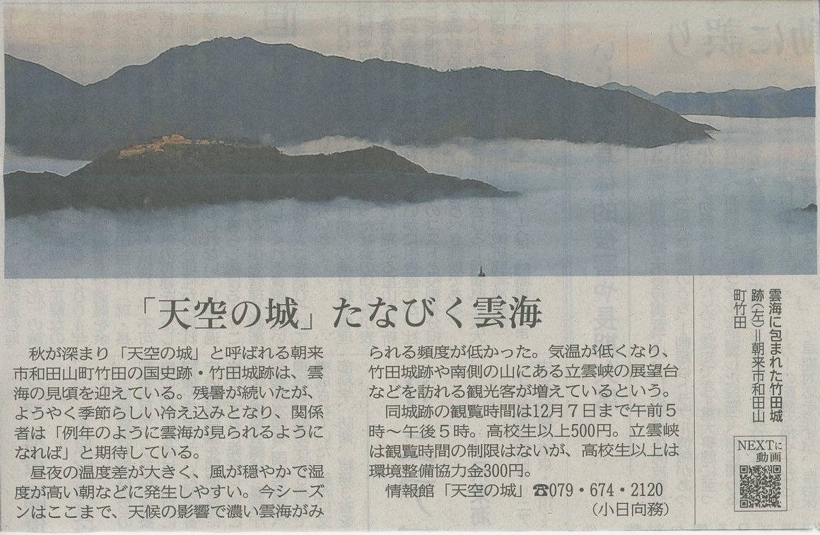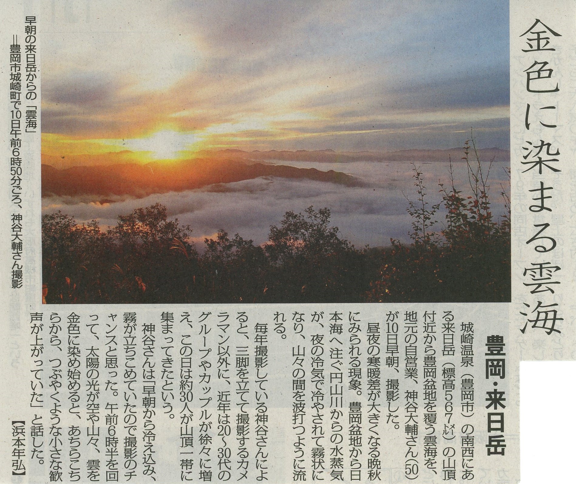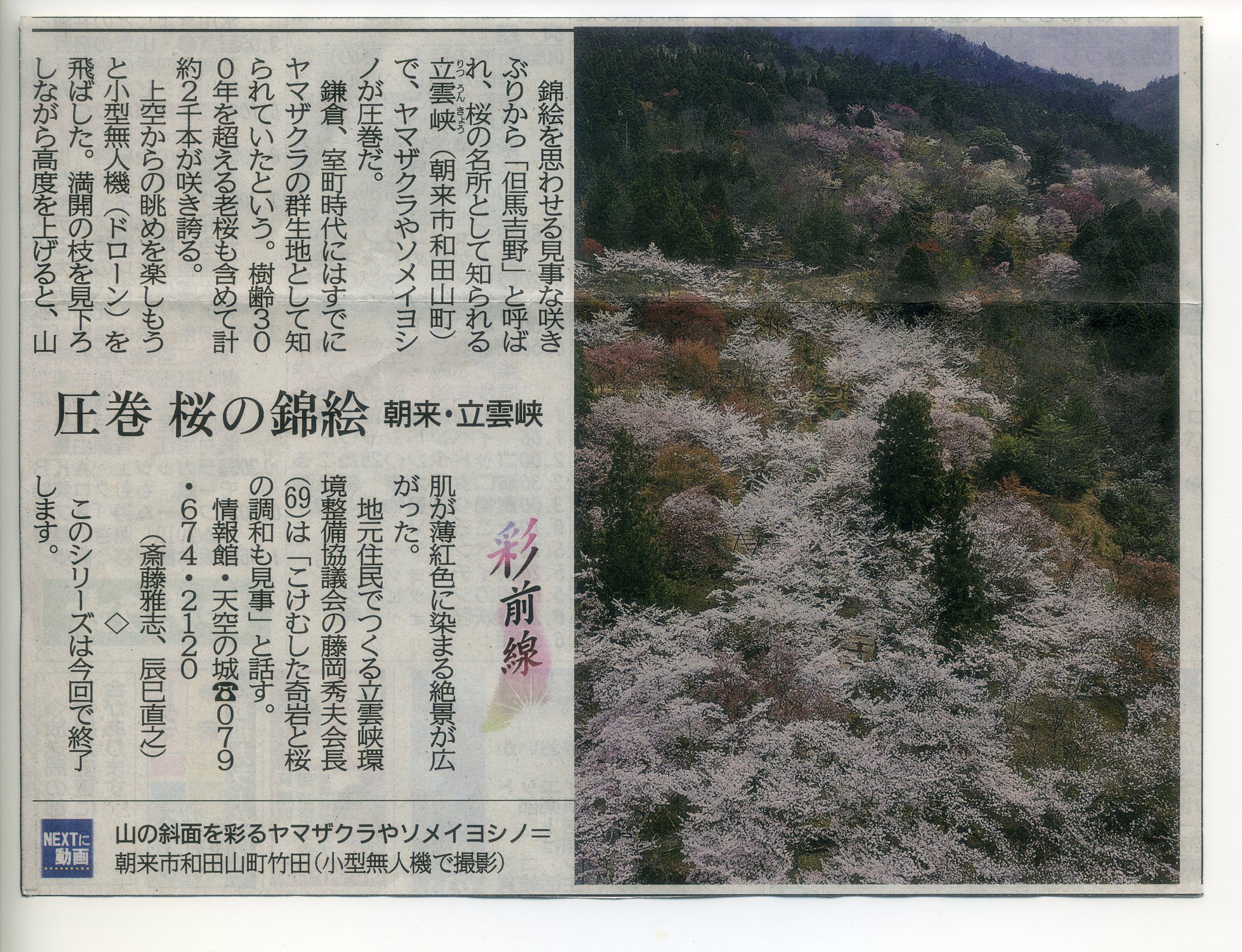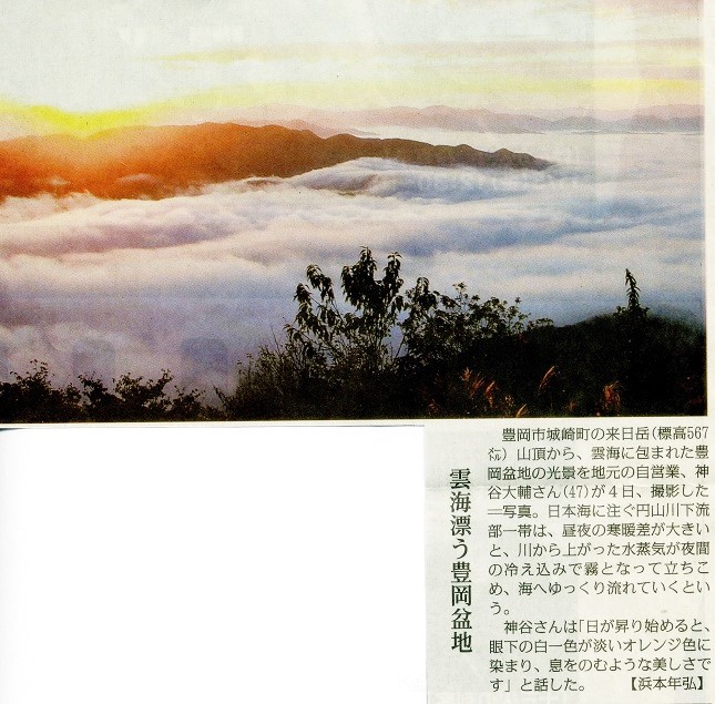 新聞に掲載された記事をまとめました。 但馬地域 但馬 玄武洞 平 福 出 石 香美町 峰山高原 立雲峡 神河町 佐用町 新温泉町 宍粟市 多可町 竹田城 棚 田 竹 野 砥峰高原 城 崎 豊岡市 和田山 氷ノ山 養父市 佐用町 添野 光福寺