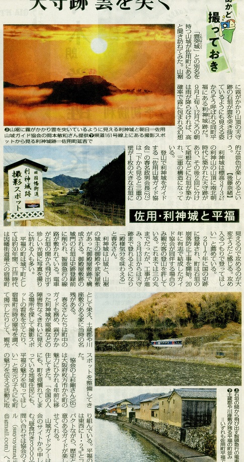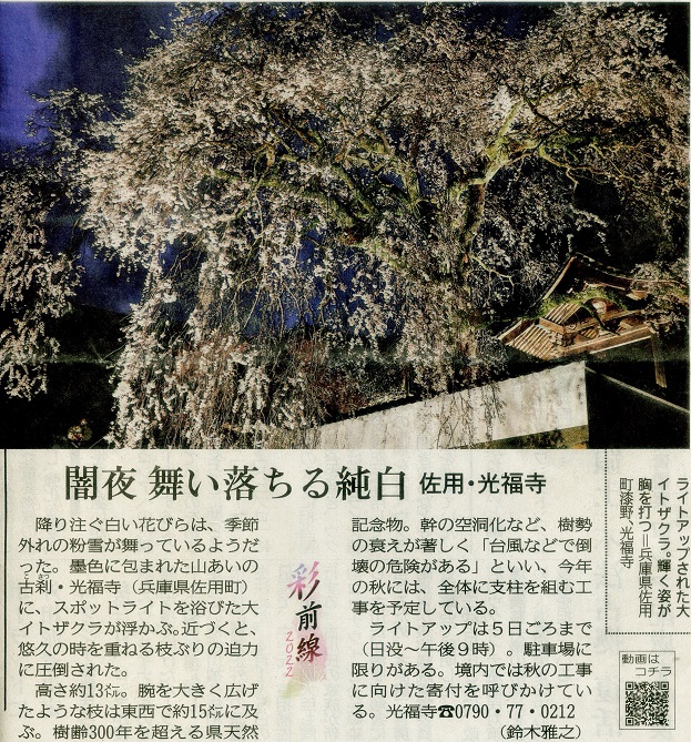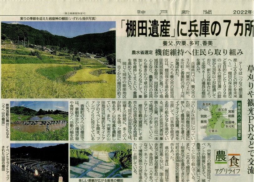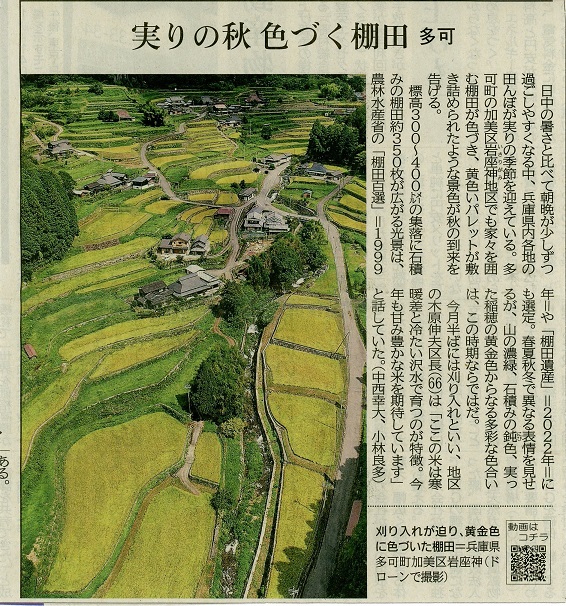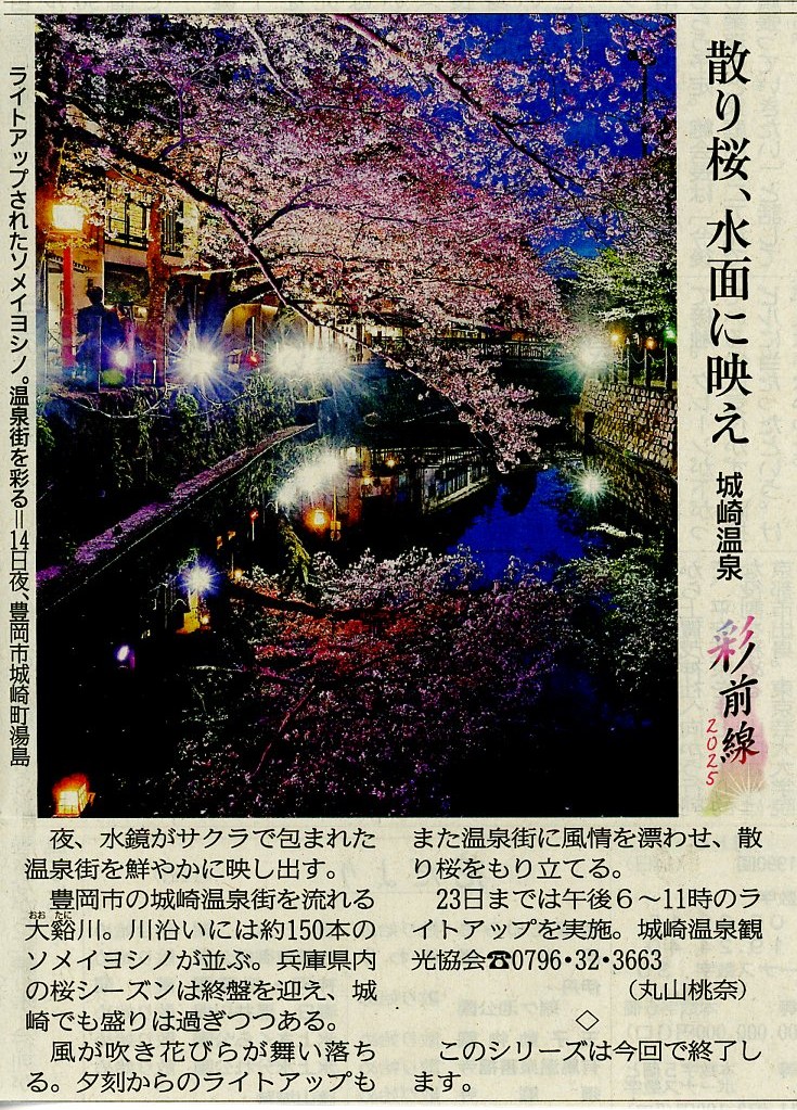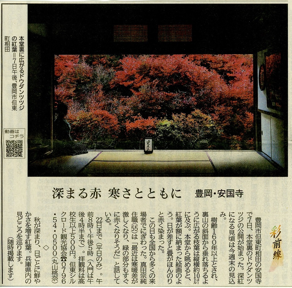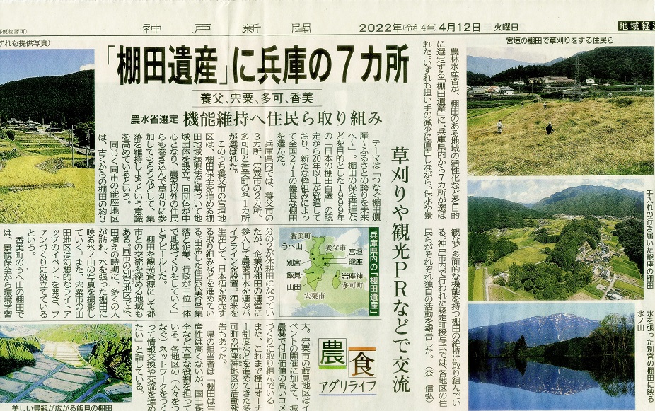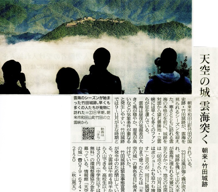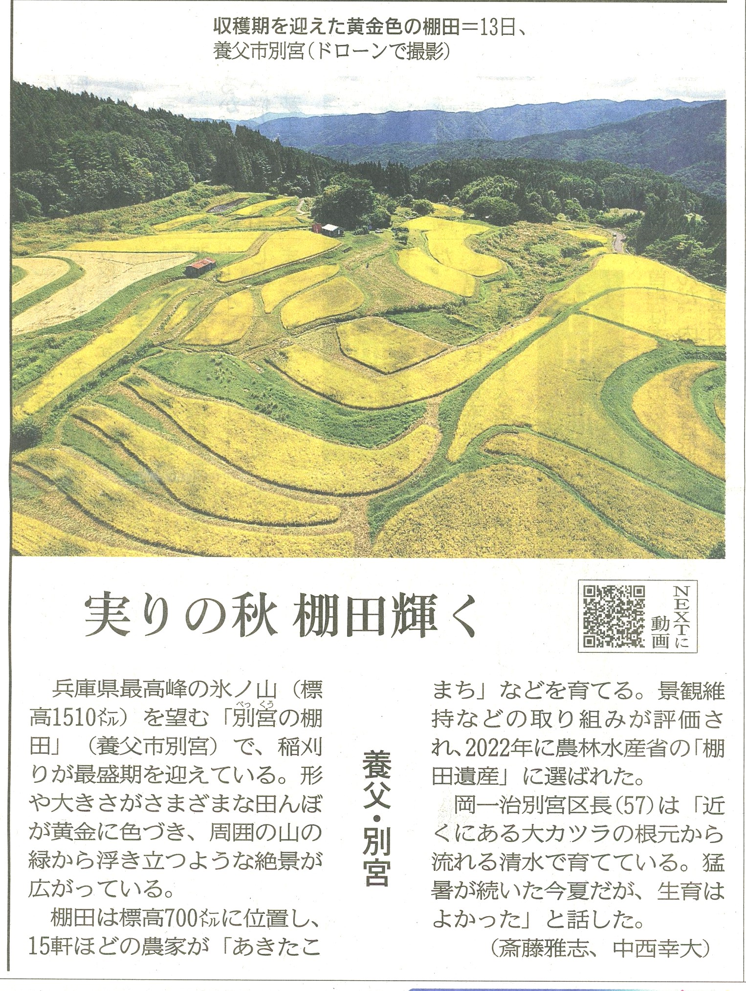 新聞に掲載された記事をまとめました。 但馬地域 但馬 玄武洞 平 福 出 石 香美町 峰山高原 立雲峡 神河町 佐用町 新温泉町 宍粟市 多可町 竹田城 棚 田 竹 野 砥峰高原 城 崎 豊岡市 和田山 氷ノ山 養父市 佐用町 添野 光福寺
