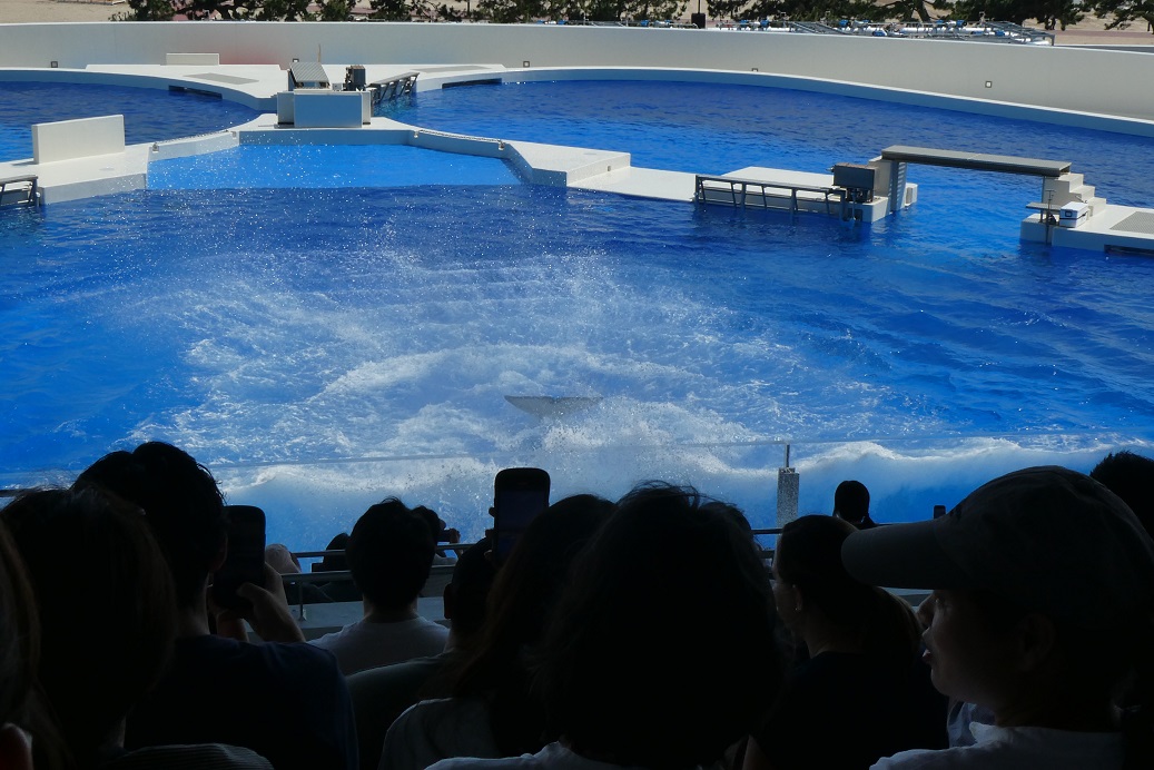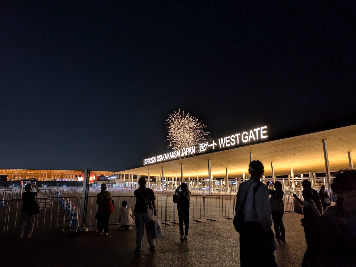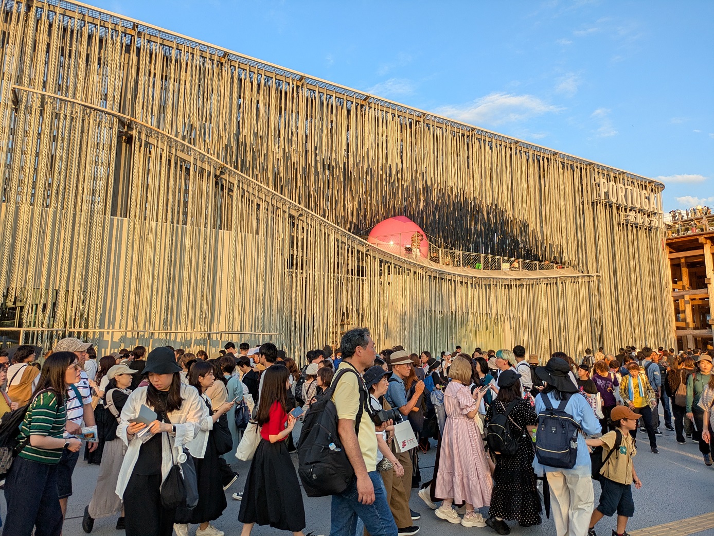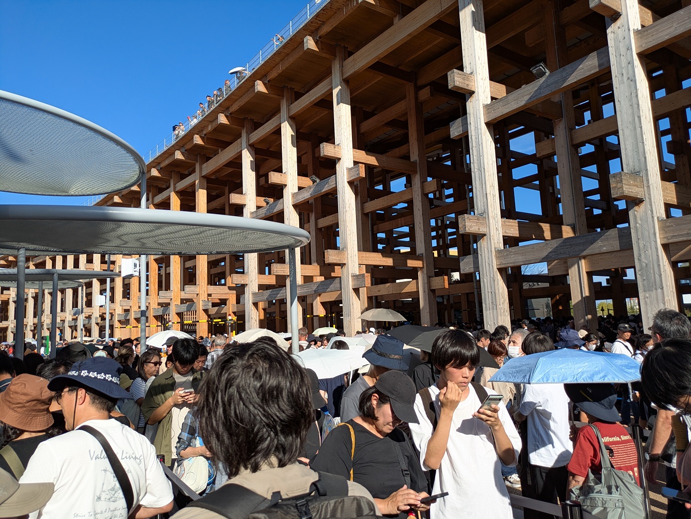 朝からの入場は疲れるので、午後4時から西ゲートのチケットを取って、三宮からバスで行きました。バスは13時15分発に乗るつもりで1時間前に乗り場に着きましたが満員で前に並んでいた数人が今なら間に合うと電車で行かれました。通パスを持っている人たちもバスの中から見るしかないネと話をしていると、臨時便が出ることになったと聞いたときは「拍手」が起こりました。ブルーインパルスの飛行が始まるまで、西ゲート入り口の建物の陰で待っていました。大きなカメラを持っている櫃が動いたら側でカメラを構えました。ブルーインパルスの「追っかけ」の人が青空だからどんなカメラでもきれいに撮れるといってもらいました。スマホで動画を撮りたかったのですがカメラの「調子」が悪く電池がするになくなり。そのあと、並んでいる時に「トルクメニスタン」の紅茶が美味しかったと聞いていたので夕方に行きレストランも並んでいたのでテラスに出ると「水上ショー」が見える場所で1時間ほど待ちました。ユスリカが飛んでいて何人かは離れていきました。大屋根リングには人が多いので、途中で1階に降りると大雨が降ってきたので会場内のバスで西ゲートまで行き、そこから出口は意外と遠かったです。帰りのバスも並んでいたけど乗ることができました。