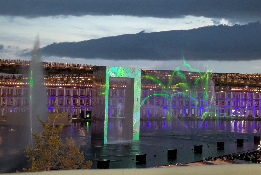 友達おや子をお誘いして、万博へ甥からチケットがあるけどと数日前に連絡が来て予約の手続きをし残念ながら西ゲートは取れなくて東ゲート12時入場で取れて友人は行けるだけでも有難いと言ってもらいました。1時間ほど待ち入場。ミャクミャク焼を並んで購入しベンチに座れたので持参のおにぎりを食べていよいよ大屋根リングに人だかりなので聞くと天皇皇后が通られるとのことなのでしばらく待っていたがあと1時間も待つのは時間の無駄なので規制のなかアラブ首長国連邦は待たずに入れポルトガル館は30分程並んで入りました。大屋根リングも規制がかかりブラジル館の前から先は通行止めで行けず大廻して人を避けて飯田館の予約時間に間に合い入場エアコンが聞いていてほっとしました。夜の地球は待たずに入場モナコ館のお庭の横の建物はプロジェクトマッピングで地中海の海の生物を映し出していました。大屋根リングに上がり上からアメリカ館を見て友人がスペイン館を見たいとの要望でしたが列が凄くて隣のサウジアラビア館30分待ちで入場、演奏をしばらく聞いて一回りをして出てきました。バスで帰るので西ゲートまで急がなくてはでもミャクミャクとガンダムを撮影。友人は久しぶりの花火を見れて喜んでもらえました。バスは5台程待って三宮まで帰りました。
