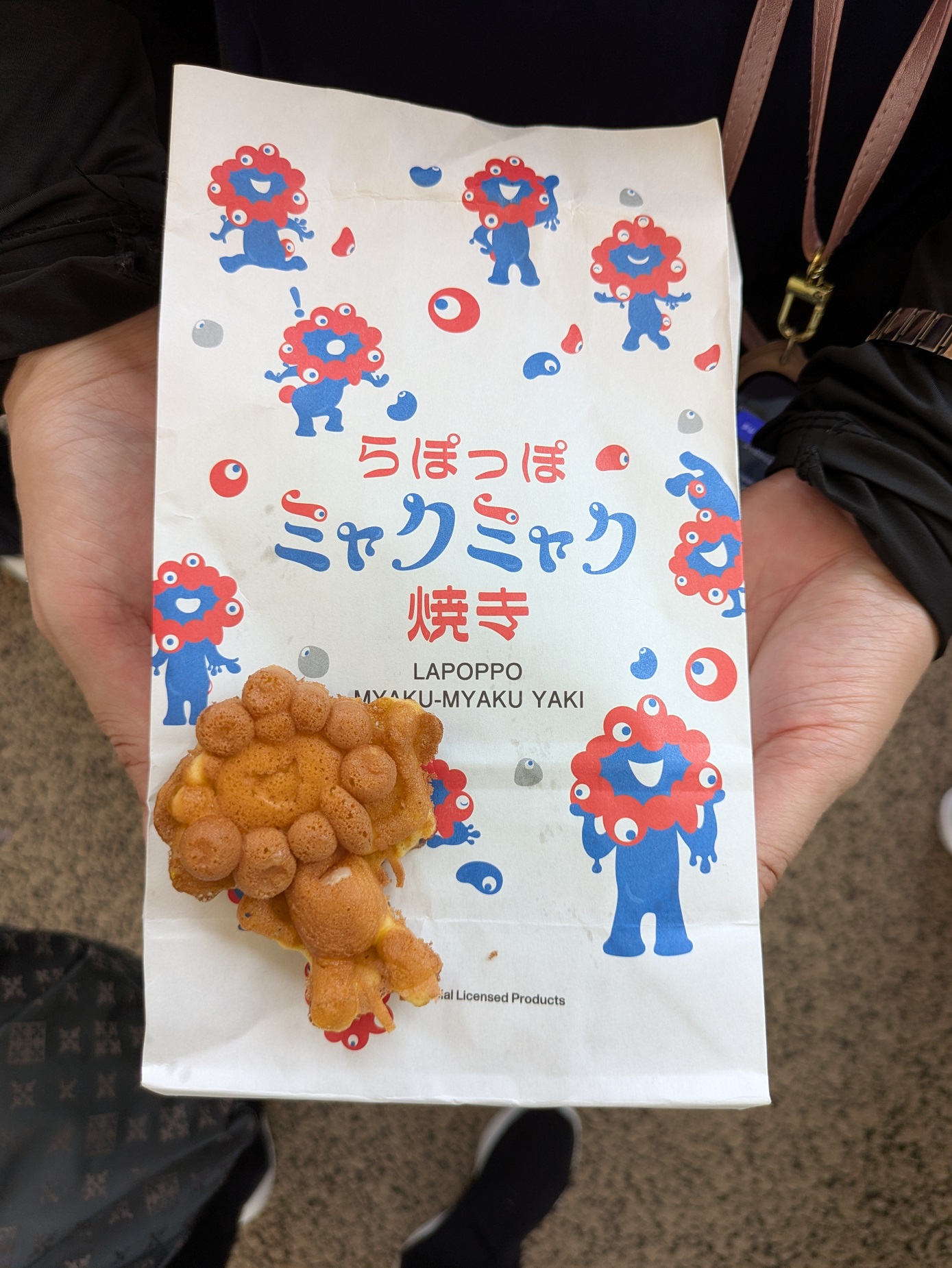 前日に姉の家に泊まり、23日朝早く万博に向けて出発しました。桜島から7時45分始発の予約でもすごい人で2台目のバスに乗車して、西ゲートまで行き、9時の入場まで携帯してきた「イス」に座って待ち、後ろの若者たちはパビリオンの予約の話で盛り上がっていました。入場後、姪は「ミャクミャク焼きを買いに行ってくれて、姉と私は「TECH WORLD」に並びました。多くのIPadでのパフォーマンスは美しかった。胡蝶蘭にミャクミャクが描かれていました。ネパール館に入っている間に姪がお弁当を買ってきてくれました。大屋根リングの下で食べ、ミャクミャクハウスで記念撮影をしたあと日本館に行き藻類に扮したキティちゃんが可愛かった。ゴミから水を作って池が館内に作られていました。火星の石も展示されていました。18時からトンカツの予約をしているのでそれまでEXPOアリーナでは「よさこい祭り」をしていたが暑くて見ることができず、団体休憩所で一休み 姪が「くら寿司」のデザートを予約してっくれていた。足が委託で歩くのが遅くなり、未来館にはゆけませんでした。その後、全国で中止になった「花火玉」を集めてお「花火」「ドローン」を見ることができて萬足でした。