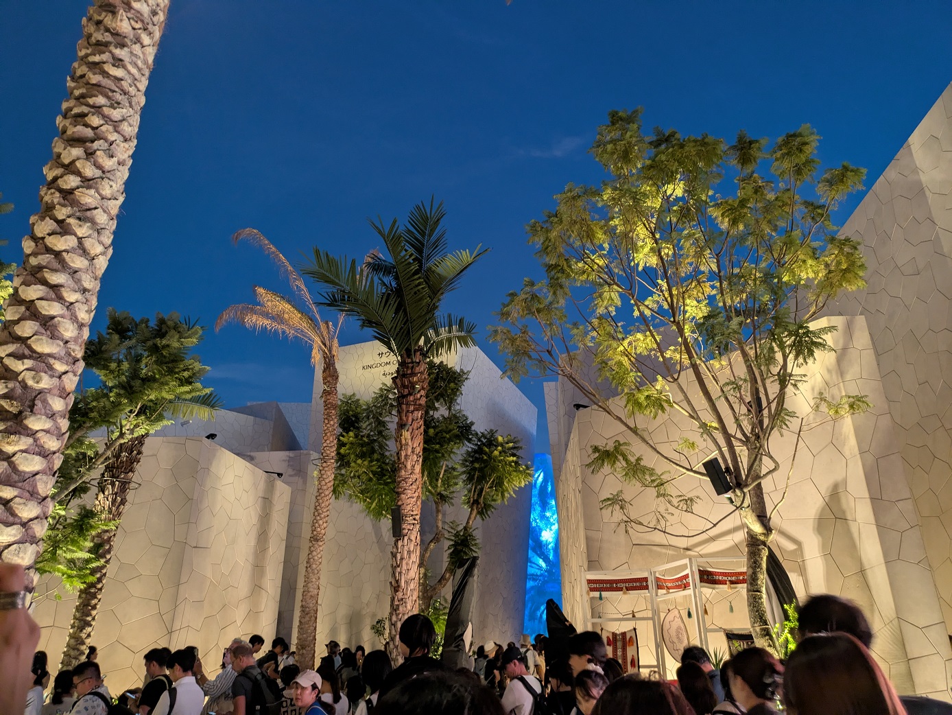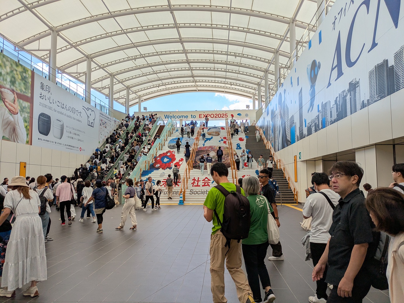友達を誘って万博に行ってきました。パビリオンの予約7日前、3日前、入場後10分のすべてが取れませんでした。8時30分に夢洲駅で待ち合わせて東ゲートに並び日差しがきついので外人の子供は地べたに座ってお尻で移動、前にいる人の日傘の先があたり我慢ができなくなり差す位置を換えてもらいました。9時30分頃入場できました。郵便局から用意をしていた葉書を出す。姪から当日解放のパビリオンの時間やくら寿司のテイクアウト等の情報をラインで送ってくれたのですが、予約は遅い時間しかなく諦めました。ヨルダン館に行くも人数制限で並べず、フィリピン館に行きました。再度ヨルダン館に行き並ぶことができました。素足になって砂漠の砂の上を歩き座ることもできましたひんやりとして気持ちよかったです。大屋根リングに上がり目指していたトルクメニスタンが並んでいたのでやめにして大屋根リングの芝の上で持参したパンをフランス館USA館に並んでいる人たちを見ながら食べました。万博の周りを走っているバスに乗り西ゲートまで行きました。友人が今すぐコーヒーが飲みたいというのでコーヒーが美味しいパビリオンはいっぱいあるが並ぶのでコンビニで買い座れるベンチを探して飲みました。西ゲートのミャクミャク、ガンダムを見て大屋根リングの中に入りコモンズ館に入りスタンプを押しました。空いているベンチで休憩をしていると友人の帰る時間になり東ゲートまでお見送りしました。スマホの充電器(電池式)では4%位しか充電できませんでした。インフォメーションで充電器を売っている建物を教えてもらい係の人が電池式はガラケーには使えると教えてもらいました。フランス館では撮影ができて充電のおかげでした。いっぱい撮影しました。やっぱりフランス館はオシャレでした。その後カタール館、アラブ首長国連邦館を見て小腹がすいたので東ゲート横のローソンでサンドイッチを食べて帰りました。各パビリオンのライトアップは綺麗でした。