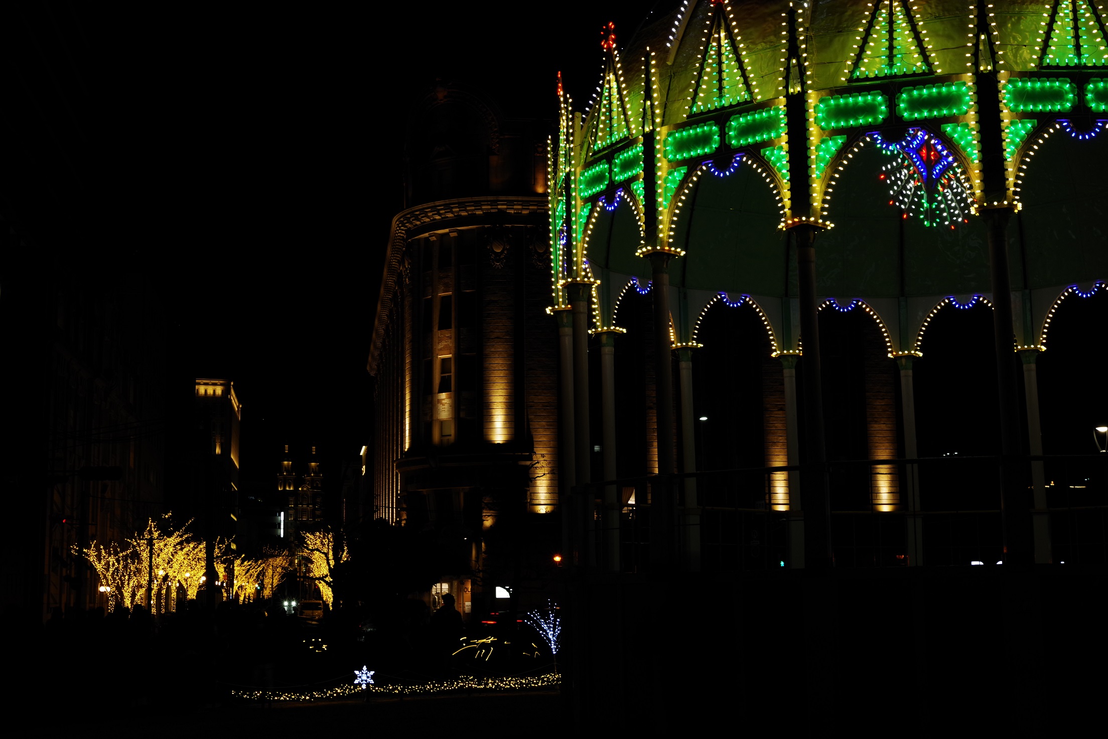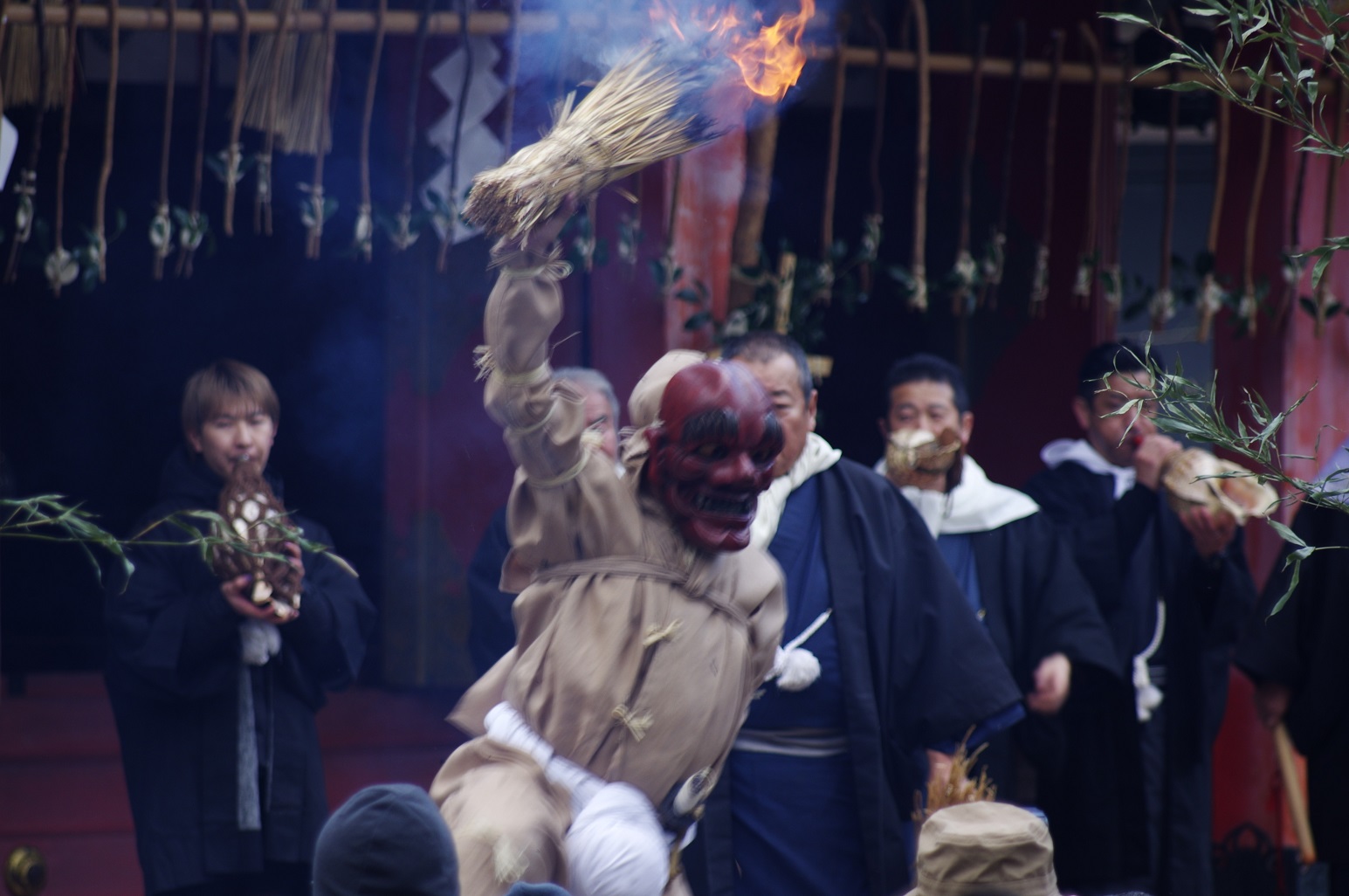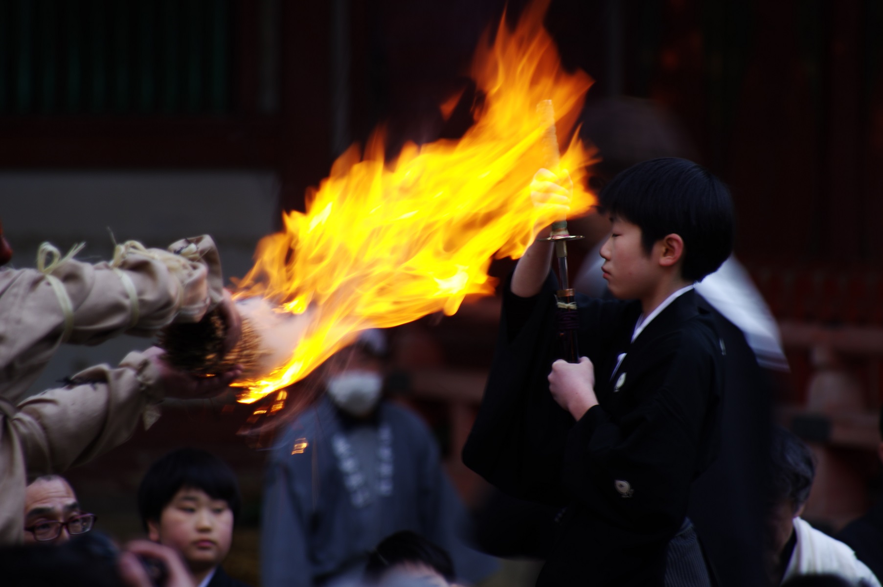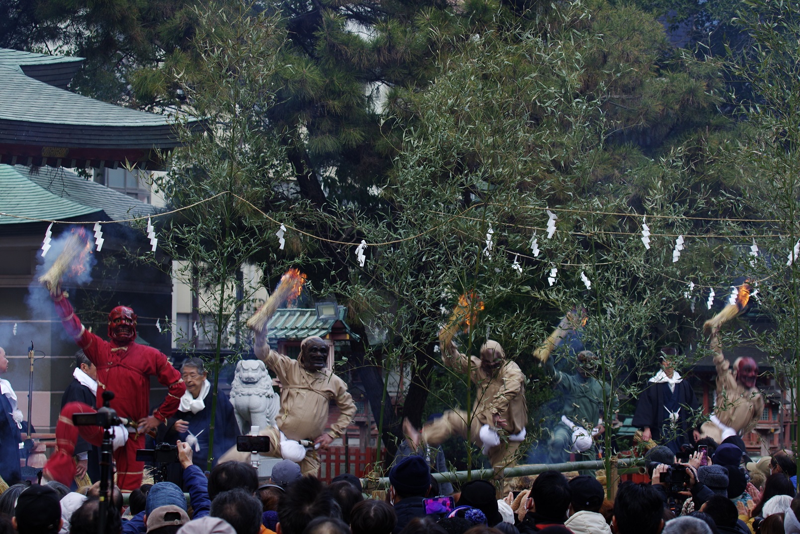 今年の出初式撮影は姫路城へでかけました。この冬一番の寒波の襲来で、風が強く時どき雪が舞う中で行われました。姫路城の出初式は初めてなので「姫路城」をバックにした写真が取れるところに陣取りました。式典は各種の表彰が続き1時間ほどあり、足の先が冷えてきて我慢の時間が長かったです。演技は梯子乗りがメインでしたが、姫路城をバックにした所で陣取ったので良い被写体にはなりませんでした。和太鼓の演技も招待席の人が邪魔になって望遠レンズでもいい角度がなかった。一斉放水は、天候も回復して朝日のあたる中での放水演技でしたので、「虹」ができる位置で思った写真がとれました。